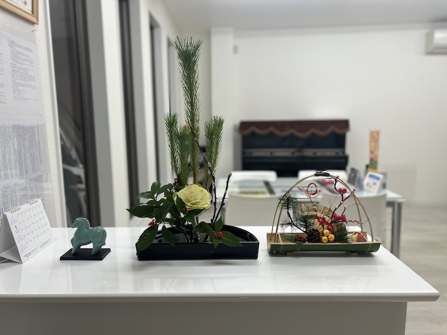 写真の真ん中は弊社事務担当者が生けてくれました。